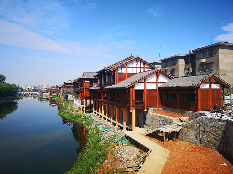 澧縣栗河吊腳樓屬于澧縣河湖水網(wǎng)連通生態(tài)水利工程生態(tài)景觀部分,項(xiàng)目位于澧縣解放路以東,永興寺路以西,南側(cè)為現(xiàn)狀多層建筑群,北鄰栗河。